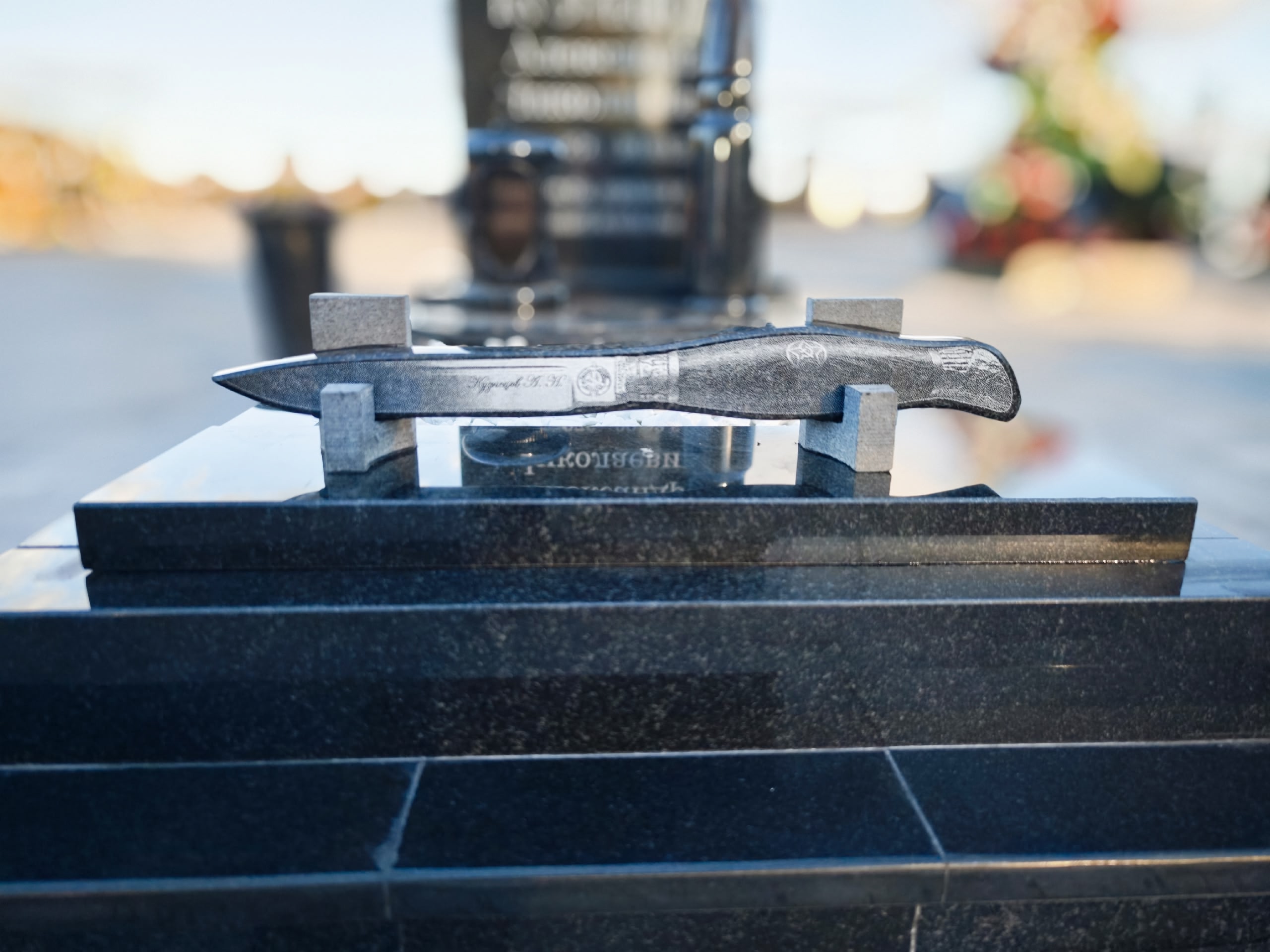 Врезка плитки в гранитный памятник